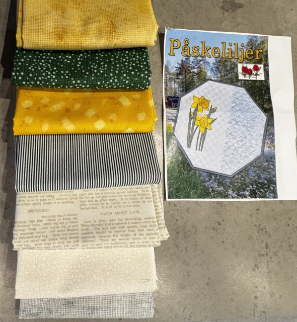 Påskelijler-stoff og mønster-4stk mønster-35x55cm naturhvit, -30x55c m naturhvit-10x110cm grønn-applikasjon, du får litt grønt, to gule PrisNOK450,00 inkl. mva. På lager Antall Kjøp Del dette