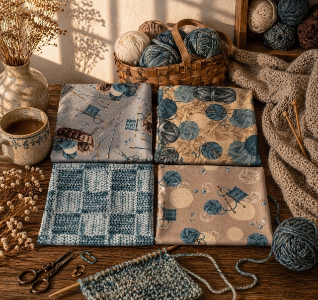 4 stoff med flotte strikkemotiver-av 50cm-Cosy knit-lyse grå bunnfarge