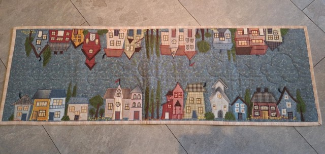 Quiltekjerringan. Gata vår så lekker løper32x100cm, applikert med så lekre hus og trær...mønsteret sendes deg som PDF PrisNOK129,00 inkl. mva. Antall Kjøp Del dette