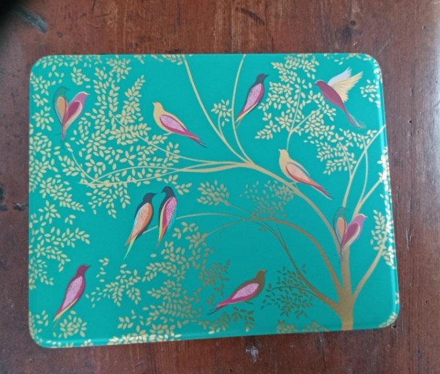 Boks med fugler og gull dekor dekor rundt det hele, bredde20cmx16x7 cm i høyden PrisNOK199,00 inkl. mva. Antall Kjøp Del dette